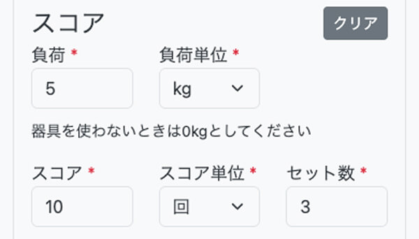 スコア単位:1セットでどれくらいトレーニングしたのか回数や秒数などの単位