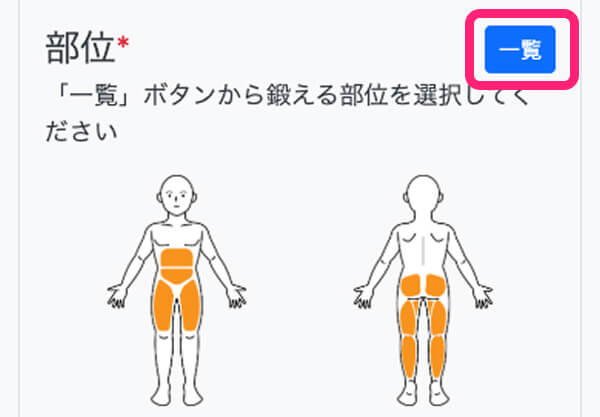 一覧ボタンをクリックすると、部位を選択できます。