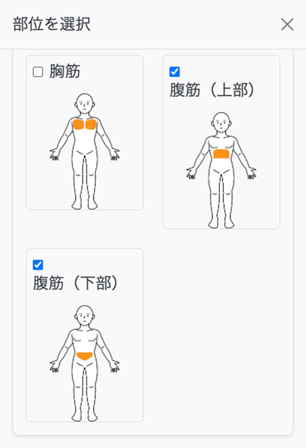 トレーニングで鍛えた部位が含まれる画像にチェックを入れて「選択」ボタンをクリックします。